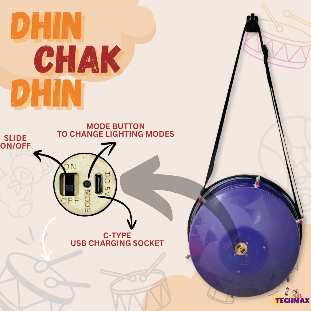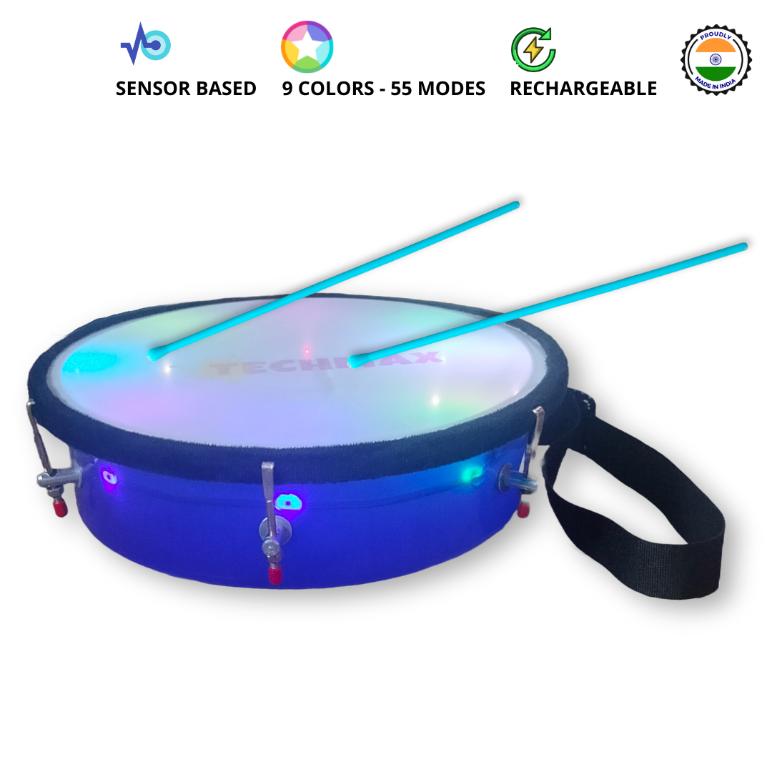 11.5 Inch - Blue - Plastic - Lighting Dholak Tasha - Sensor Based - Single Side