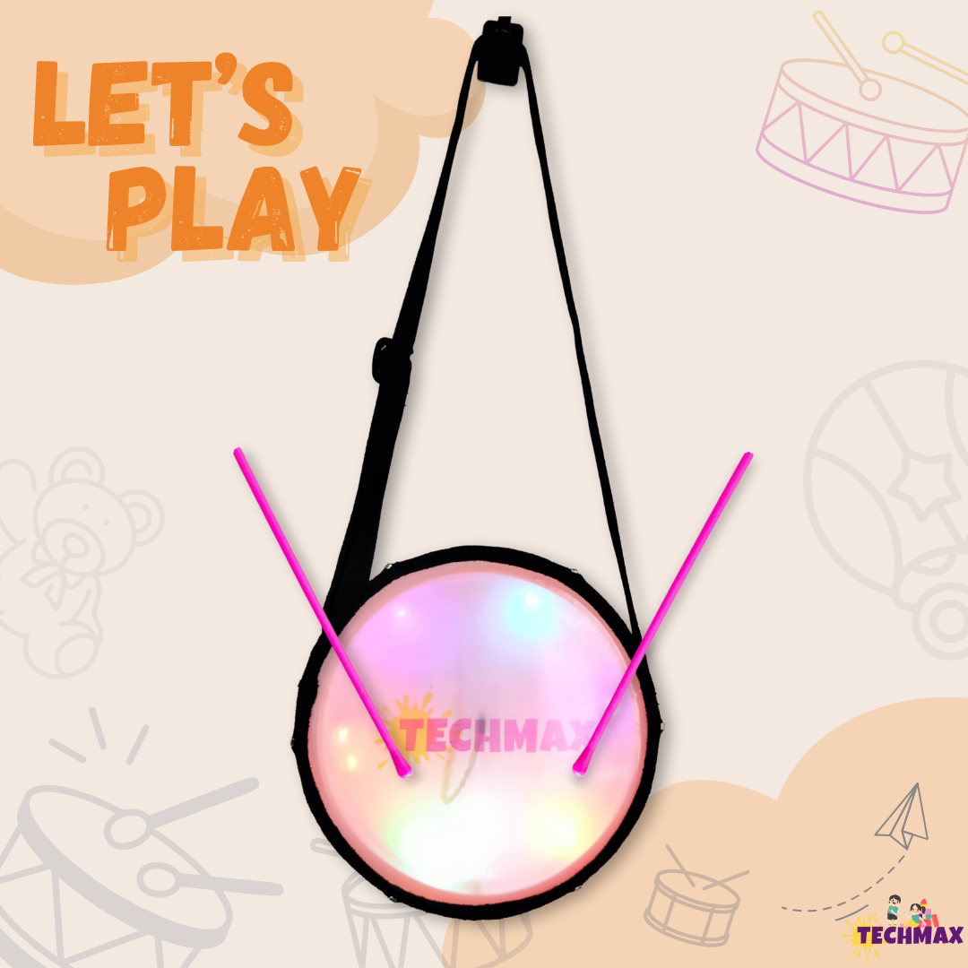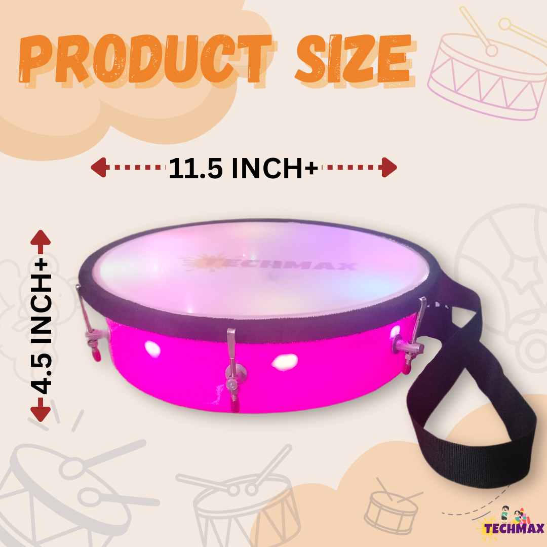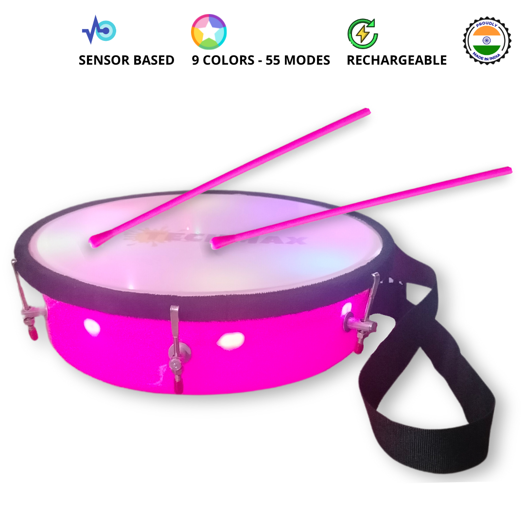 11.5 Inch - Pink - Plastic - Lighting Dholak Tasha - Sensor Based - Single Side